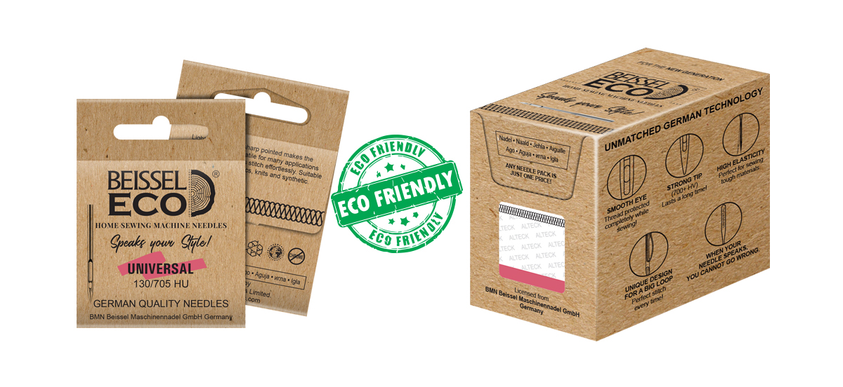 BEISSEL ECO offers a wide range including Universal, Ball point, Embroidery, Denim, Leather, Metallic, Quilting, Stretch, Top stitch, Overlock, Twin, Triple, Wing and Self threading needles.